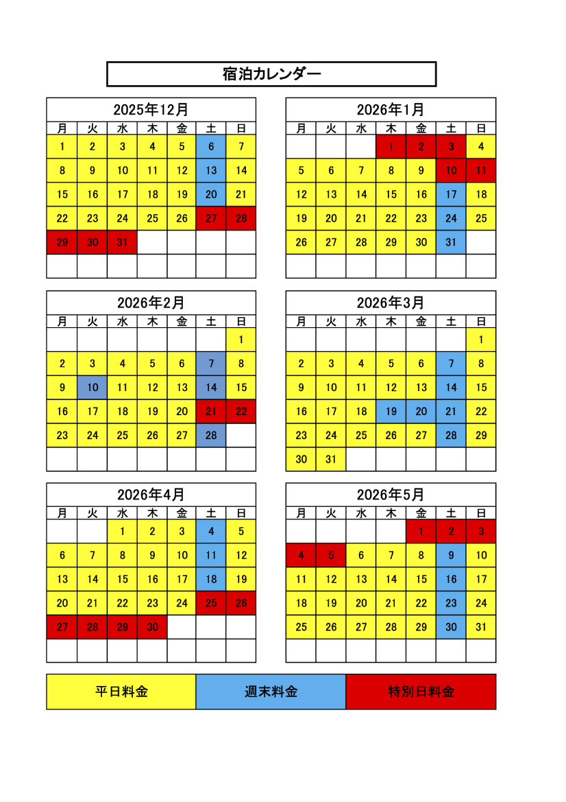 冬季(10月より4月末日まで)は暖房費を1日¥5,000(税込み¥5,500)頂戴いたします。
